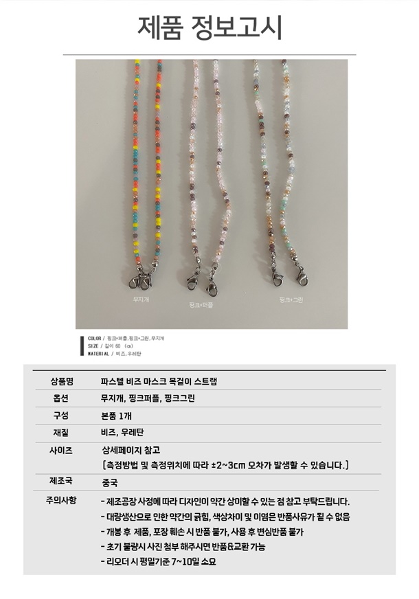 파스텔 비즈 마스크 목걸이 스트랩